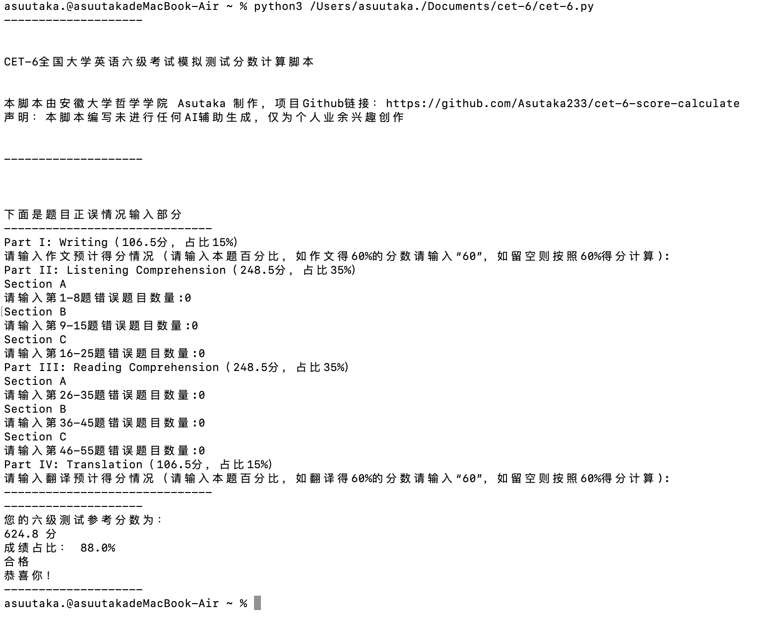 以下内容来自本人GitHub仓库,链接:https://github.com/Asutaka233/cet-6-score-calculate